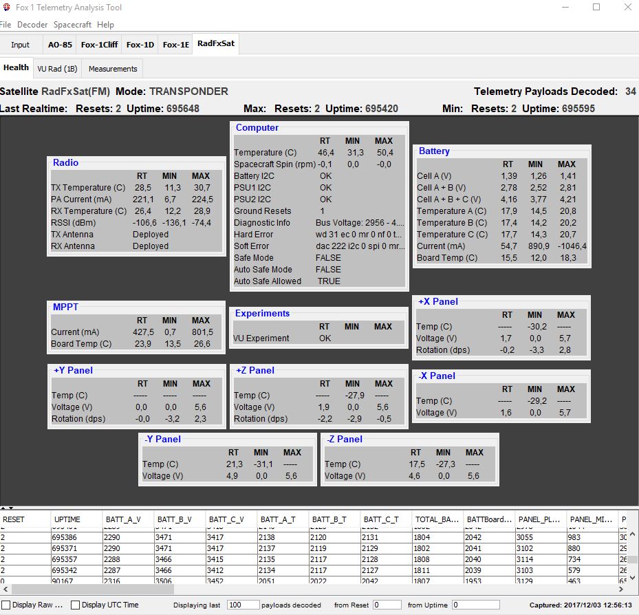 Categories Telemetry AO-91 telemetry 2017-12-03 Post author By SM0TGU Post date 2017-12-03 No Comments on AO-91 telemetry 2017-12-03 Good repeater activity over EU. By SM0TGU Webmaster and member of the AMSAT-SM steering group. View Archive → ← Status from KTH MIST satellite → Nova Tracking Software Leave a Reply Cancel replyYour email address will not be published. Required fields are marked *Comment * Name * Email * Website Δ