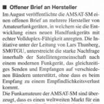 Notes from the AMSAT-SM steering group meeting 2025-11-18: General meetings: The guidelines previously stated that a general meeting could be convened if one tenth of the members requested it. In practice, this is impossible to carry out, as it would mean that… Read more: Notes from steering group meeting 2025-11-18 - Funkamateur mentions AMSAT-SM’s letter to manufacturer